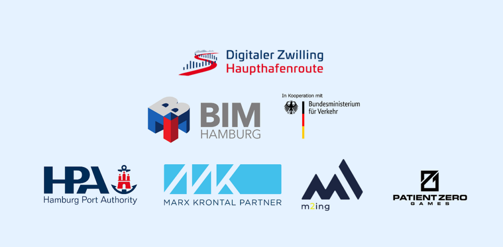 Die Partner im Projekt „Digitaler Zwilling Haupthafenroute“ sind MKP GmbH zur Entwicklung der Softwarelösung der Digitalen Objektzwillinge und Umsetzung einiger ingenieurstechnischer Teilprojekte sowie m2ing zur Weiterentwicklung der Digitalen Bauwerksprüfung und Pilotierung einer modellbasierten Bauwerksprüfung.