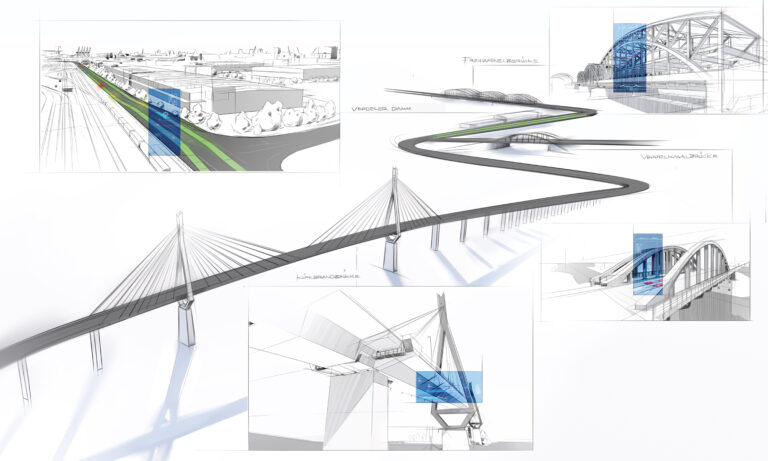 Aufbauend auf den Erfahrungen aus dem Projekt smartBRIDGE Hamburg, welches den Digitalen Zwilling der Köhlbrandbrücke entwickelt hat, geht das neue Vorhaben deutlich weiter. Statt eines einzelnen Bauwerks wird nun ein ganzes System aus mehreren Brücken und einem Straßenabschnitt digital erfasst, vernetzt und analysiert.